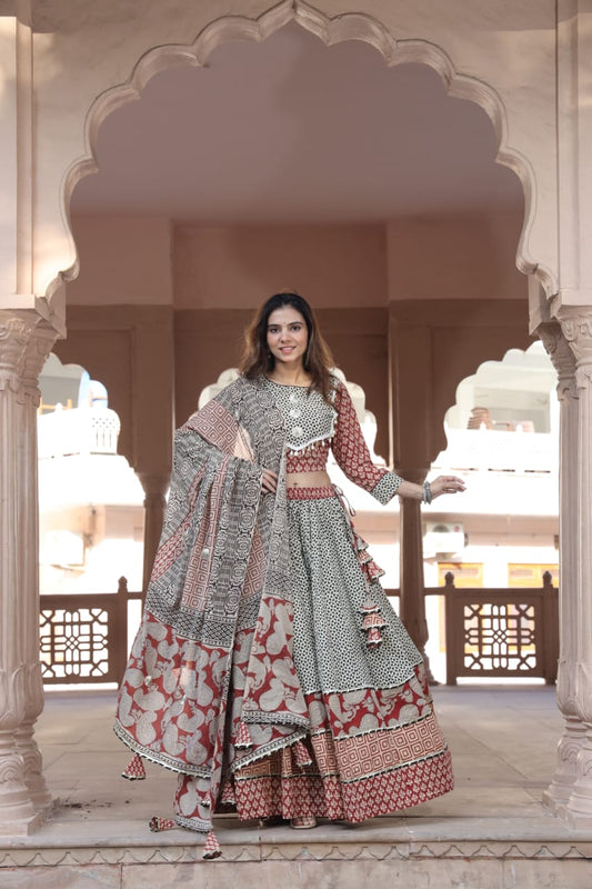 Amethyst Mul mul Cotton Lehenga set Natural Block prints