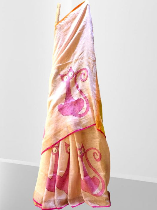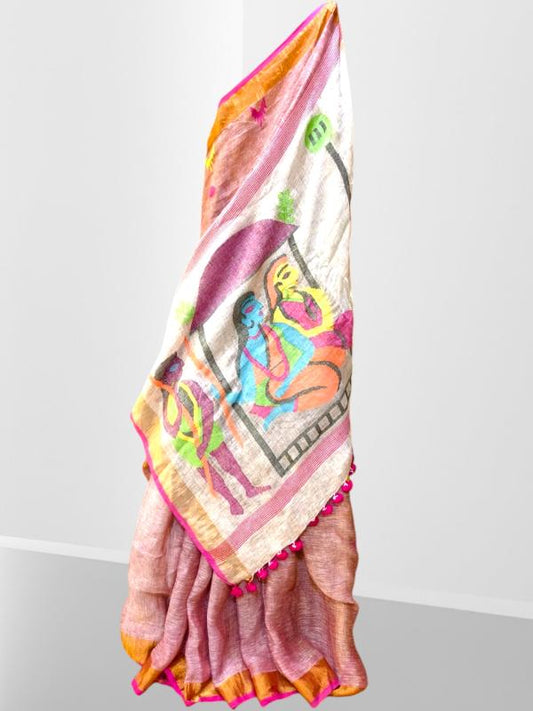 Ranga Chakra Abstract Ramayana Linen Jamdani Saree