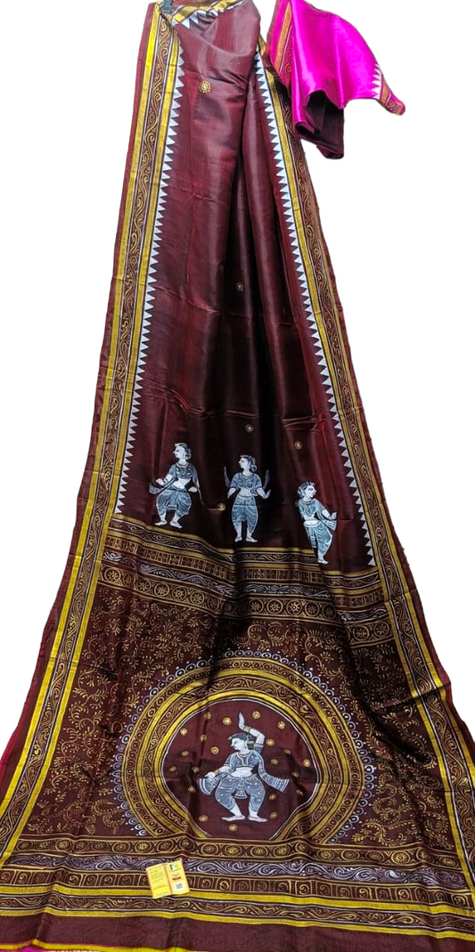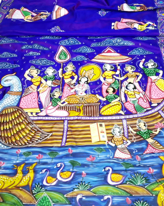 Nauka Vihar Pattachitra Handpainted Silk sarees