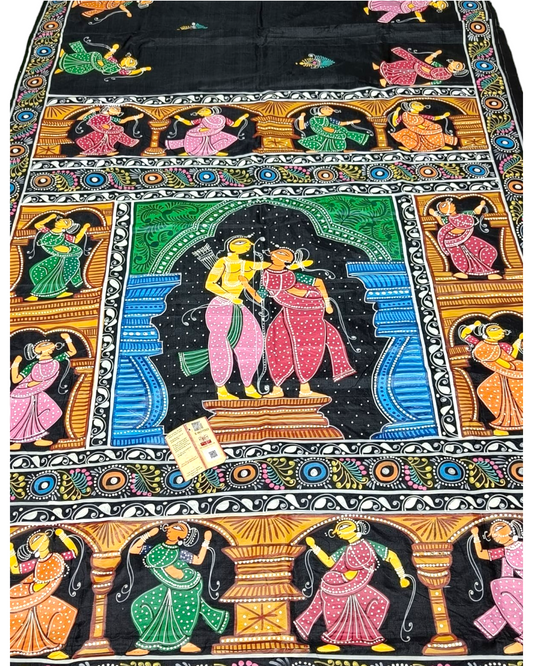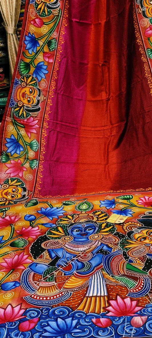 Pattachitra Krishna Darbar Handpainted Silk sarees