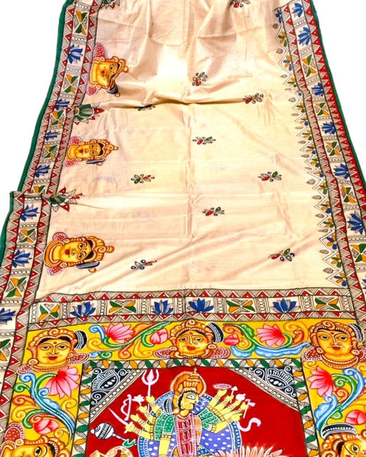 Handpainted Ram Sita Pattachitra Tussar Silk Saree | Artisan Crafted | Ranga Chakra