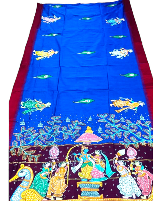 Krishna Leela Pattachitra Saree: Hand-Painted Pure Silk Masterpiece | Ranga Chakra