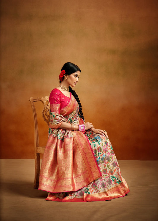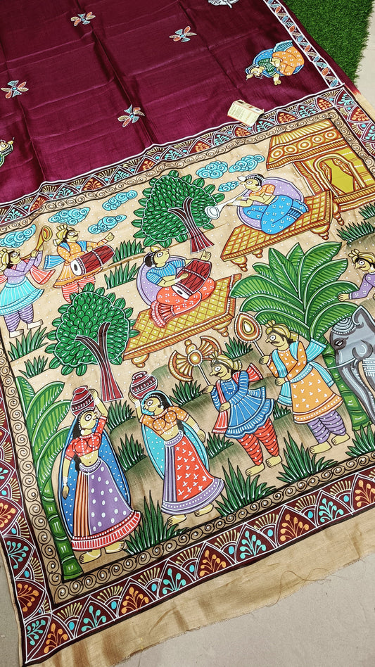 Mughal Inspired Pattachitra Handpainted Silk sarees