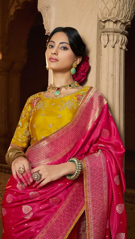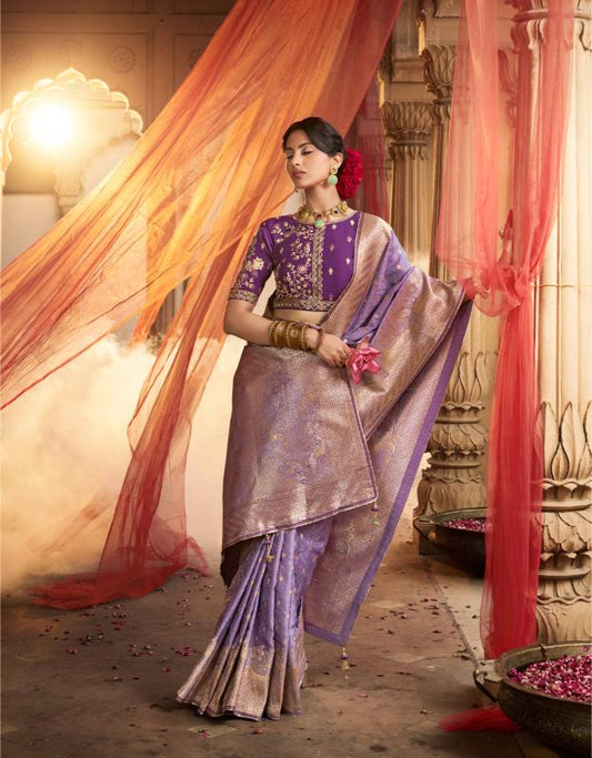 Royal Peach Zari Silk Saree with Embroidered Blouse