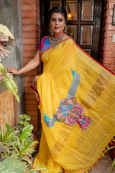 Quirky Linen Saree Abstract Bull
