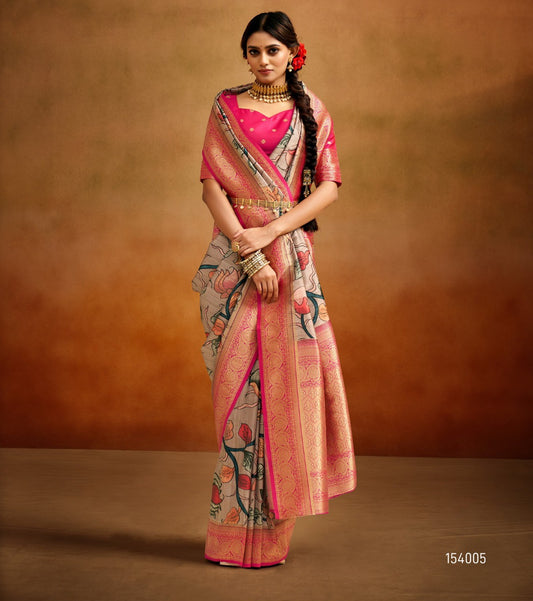 Kalamkari Floral Tussar Silk Saree