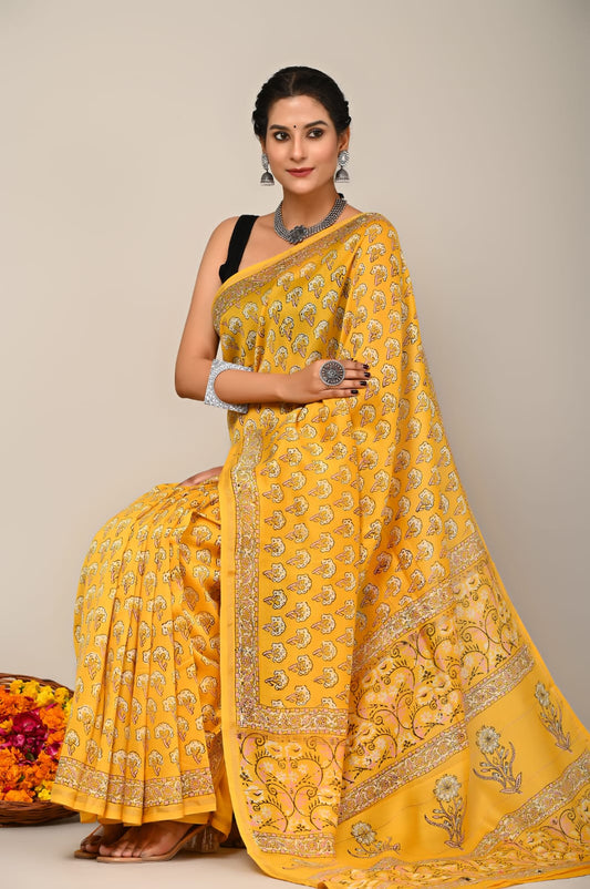 Yellow Chanderi Silk saree