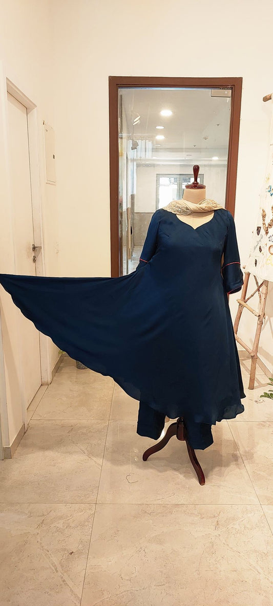 Modal Silk Blue Umbrella Flair Anarkali Suit