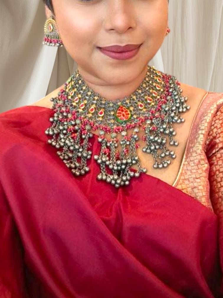 Discover the beauty of Brass bead craftsmanship with our stunning Chandelier necklace. Made from traditional fine Brass metal casting and intricate macrame technique, this necklace is a unique and elegant addition to any outfit. The perfect blend of tradition and modern style, it is a must-have for any fashion-forward individual.