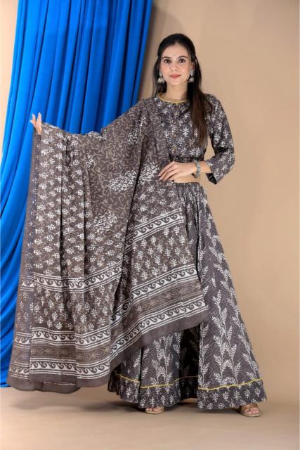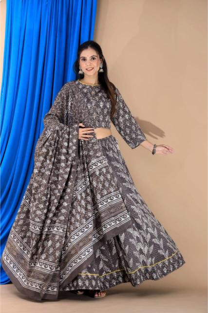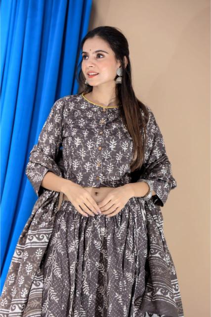 Charcoal Grey Cotton Lehenga set