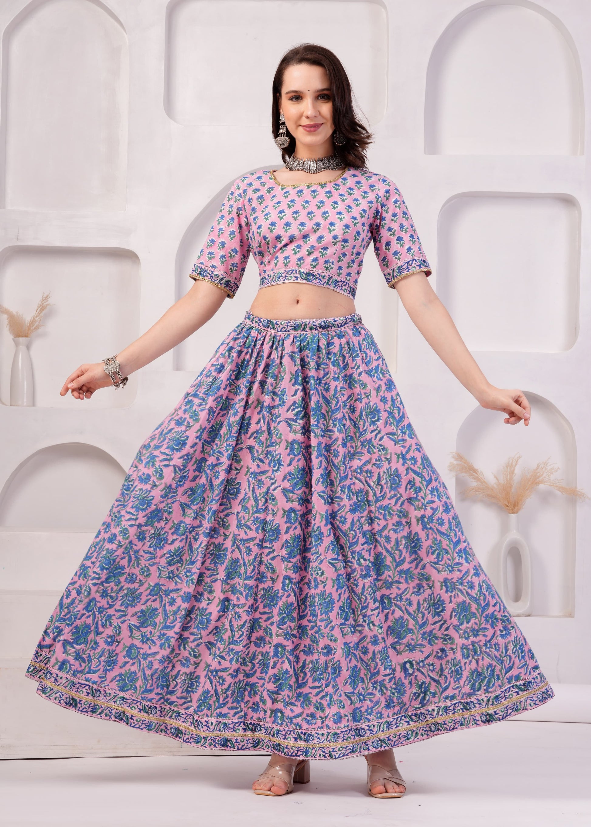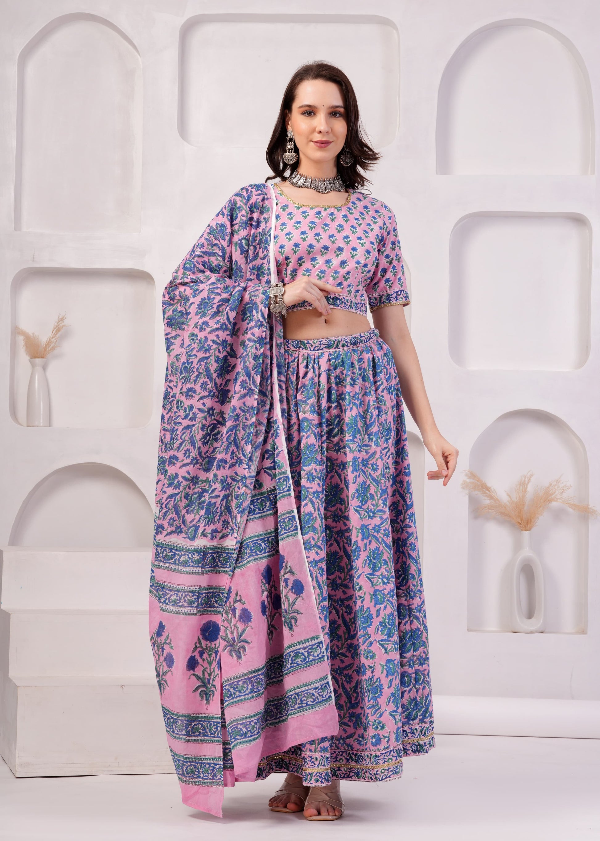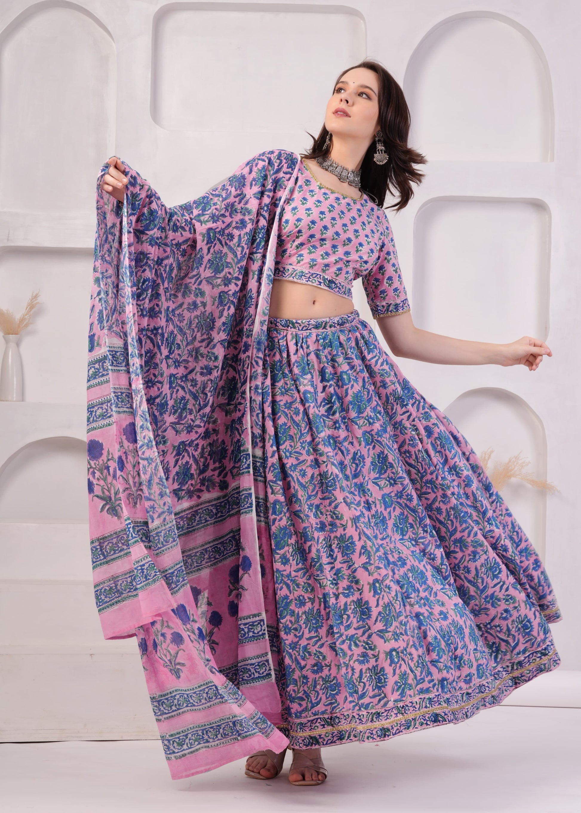 Indulge in the luxurious elegance of our Mul Mul Cotton Lehenga set. Crafted from premium indigo-colored cotton, featuring a sophisticated block printed design, this set is perfect for any formal occasion. Elevate your style with this exclusive piece and make a statement wherever you go.