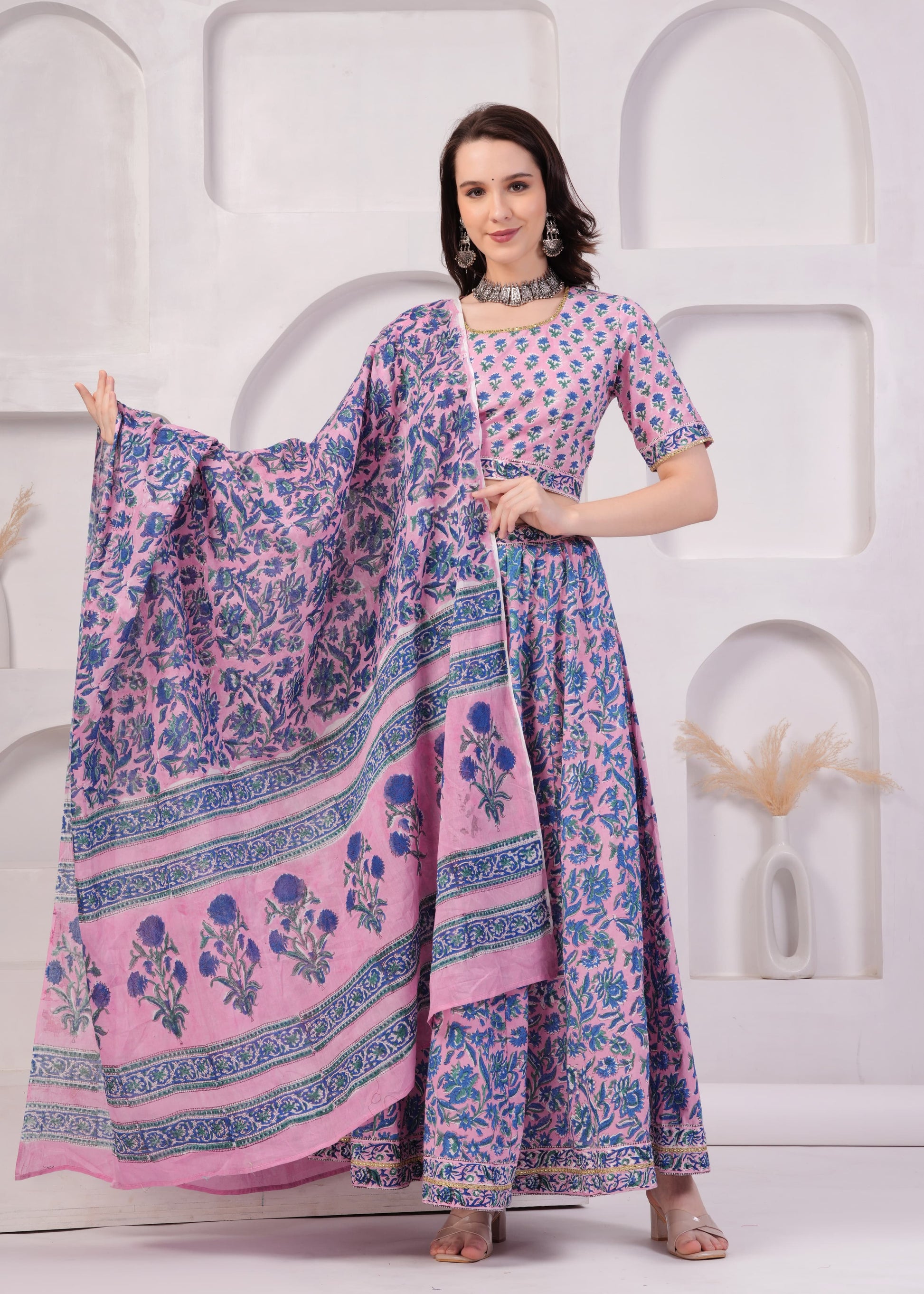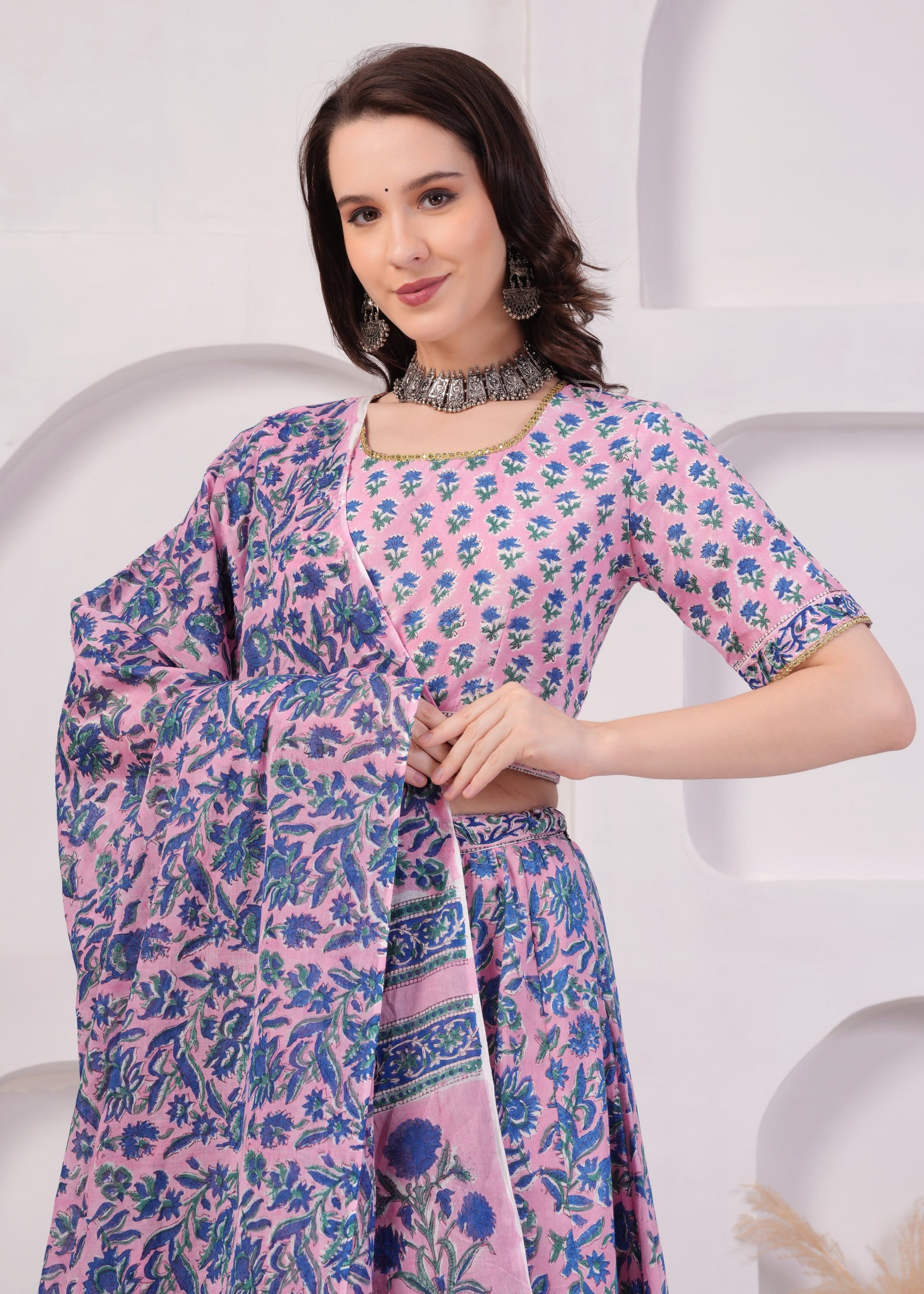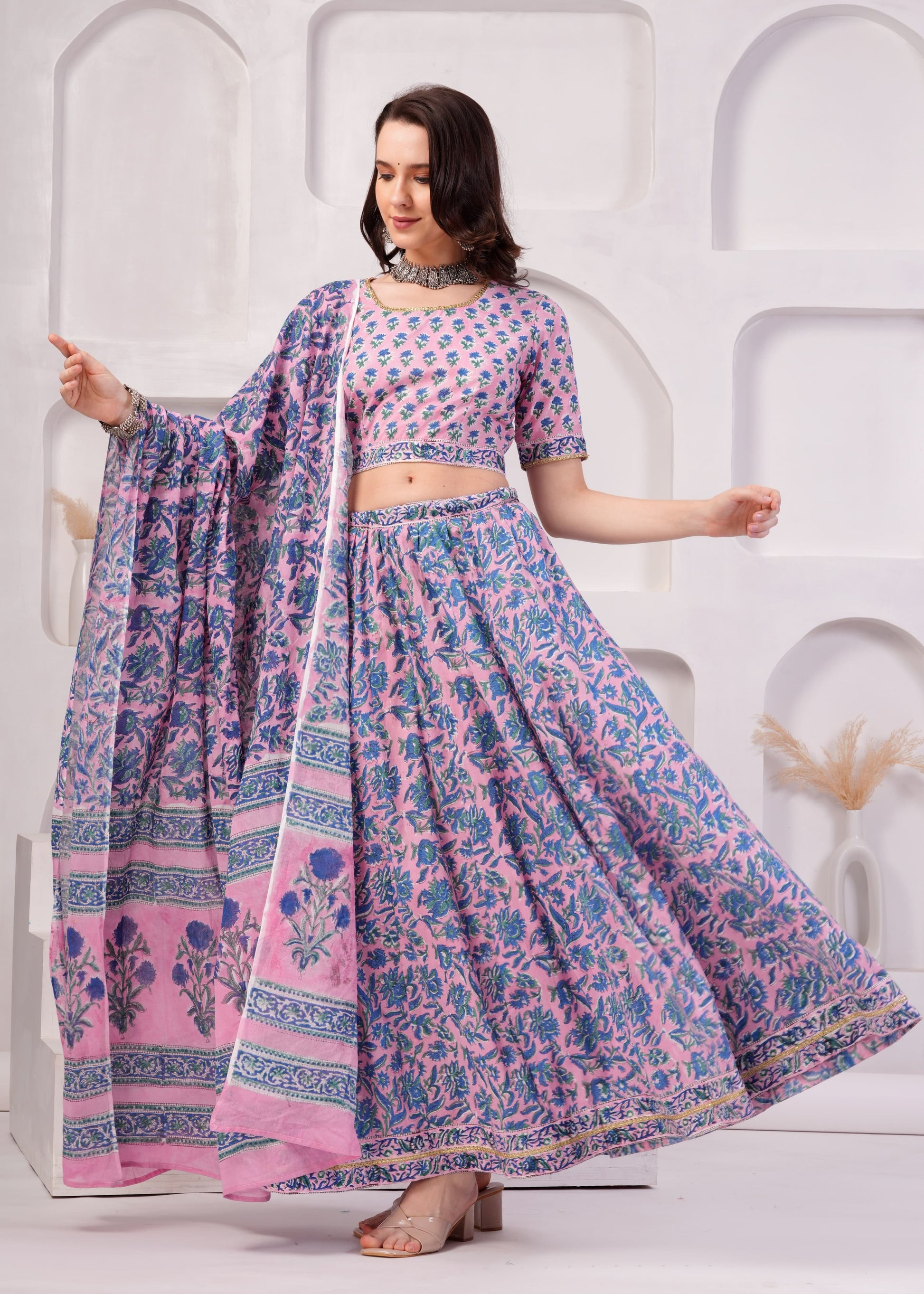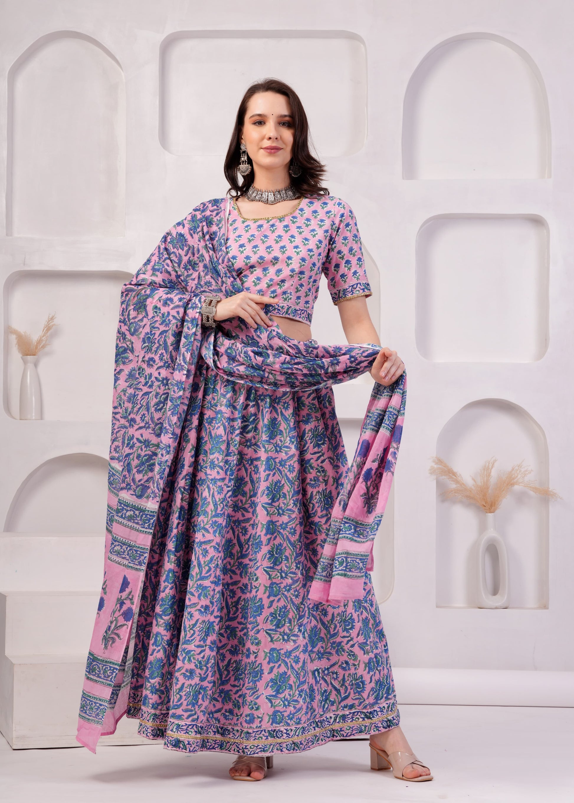 Indulge in the luxurious elegance of our Mul Mul Cotton Lehenga set. Crafted from premium indigo-colored cotton, featuring a sophisticated block printed design, this set is perfect for any formal occasion. Elevate your style with this exclusive piece and make a statement wherever you go.