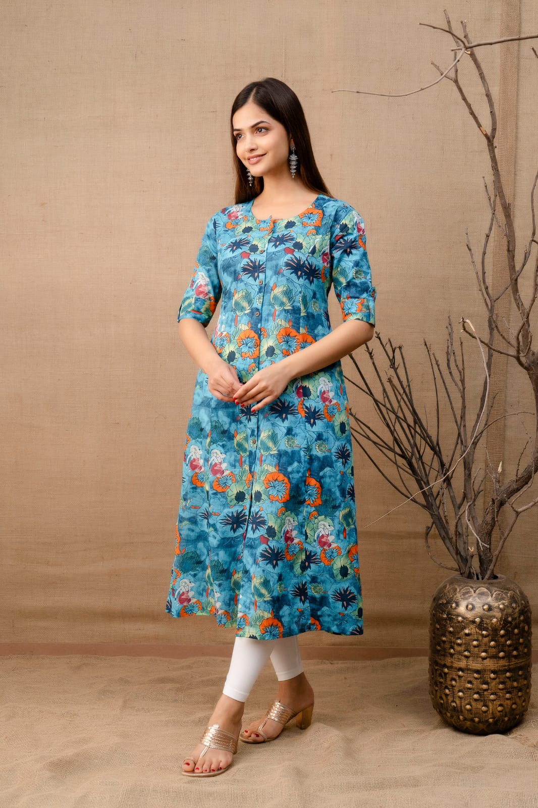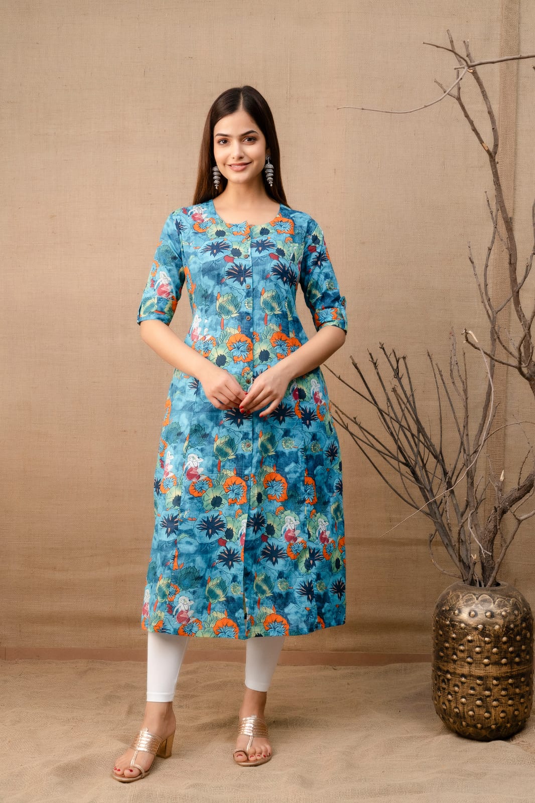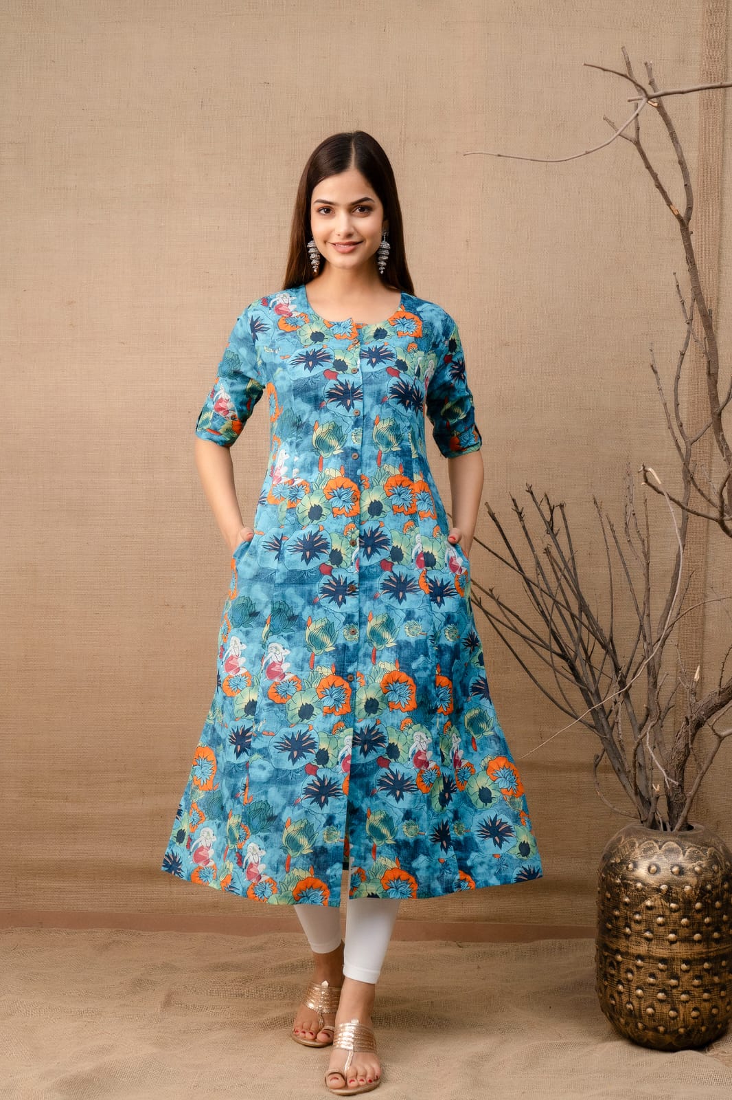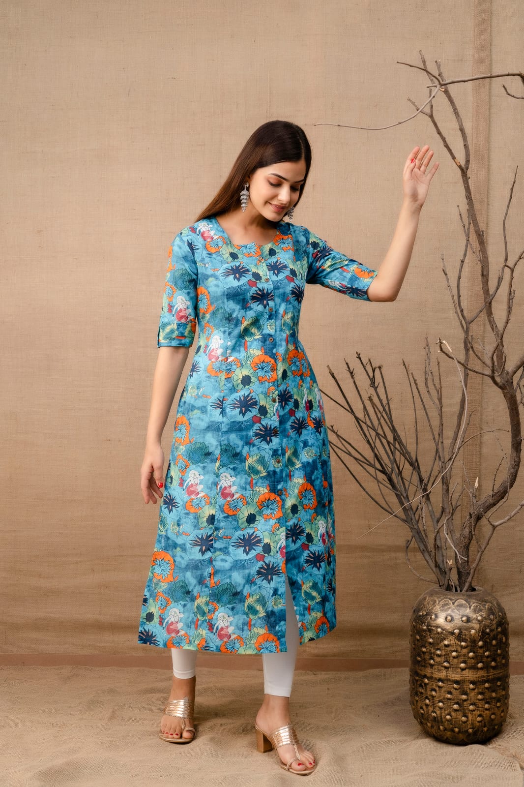 Expertly crafted from soft khadi Cotton, our tropical kurta is the epitome of comfort and style. The lightweight material offers a breezy fit that is perfect for any occasion. With its blend of natural fibers, this dress is not only sustainable but also gentle on your skin. Experience the best of both worlds with our Fusion dress.