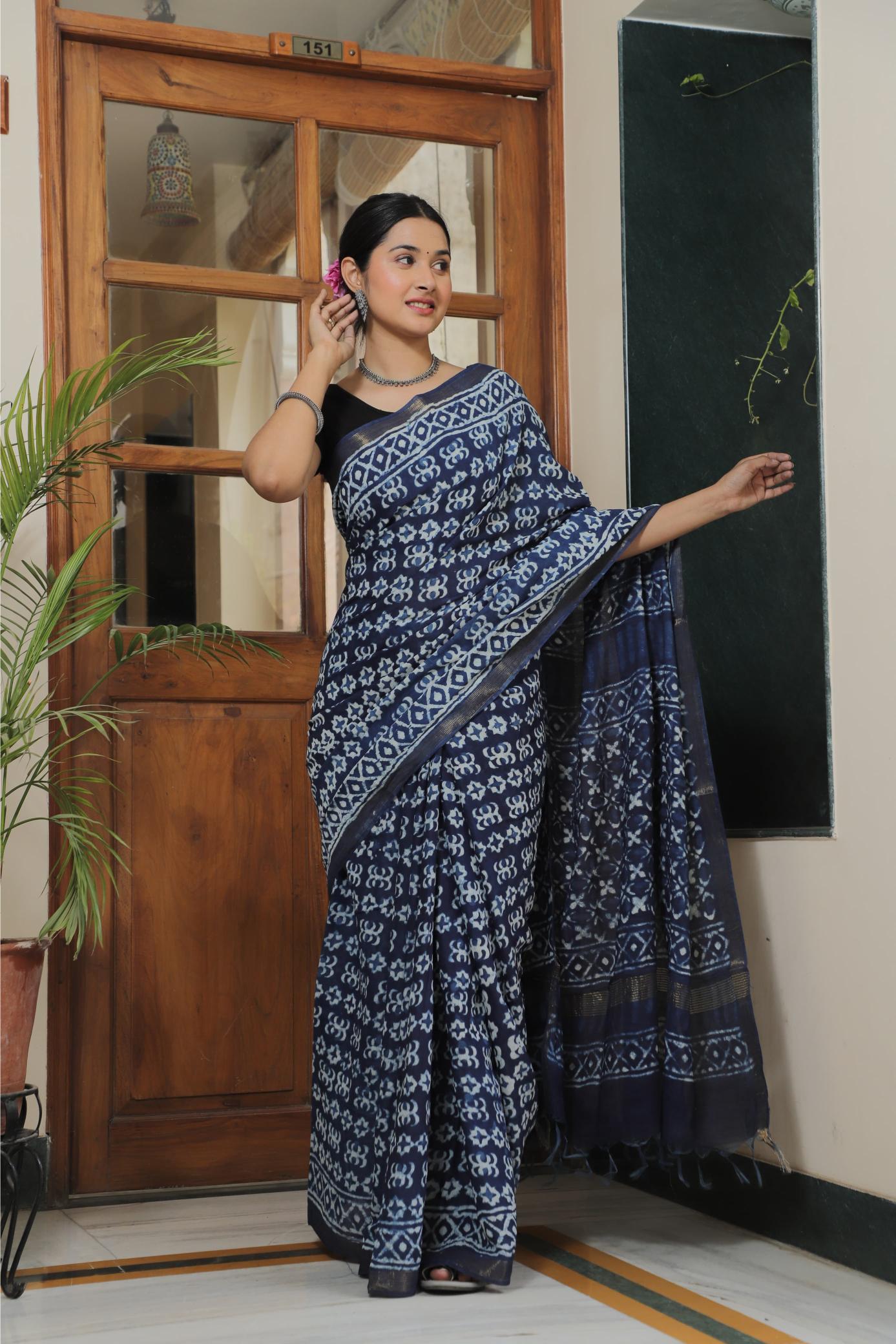 Indigo block prints saree.