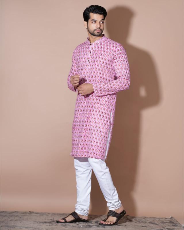 Hand crafted, the pastel Pink Cotton Kurta is a must-have for any festive occasion. Made from high-quality cotton with a pastel pink hue, this kurta features a classic block print pattern that adds a touch of sophistication. Elevate your style with this traditional yet modern piece.