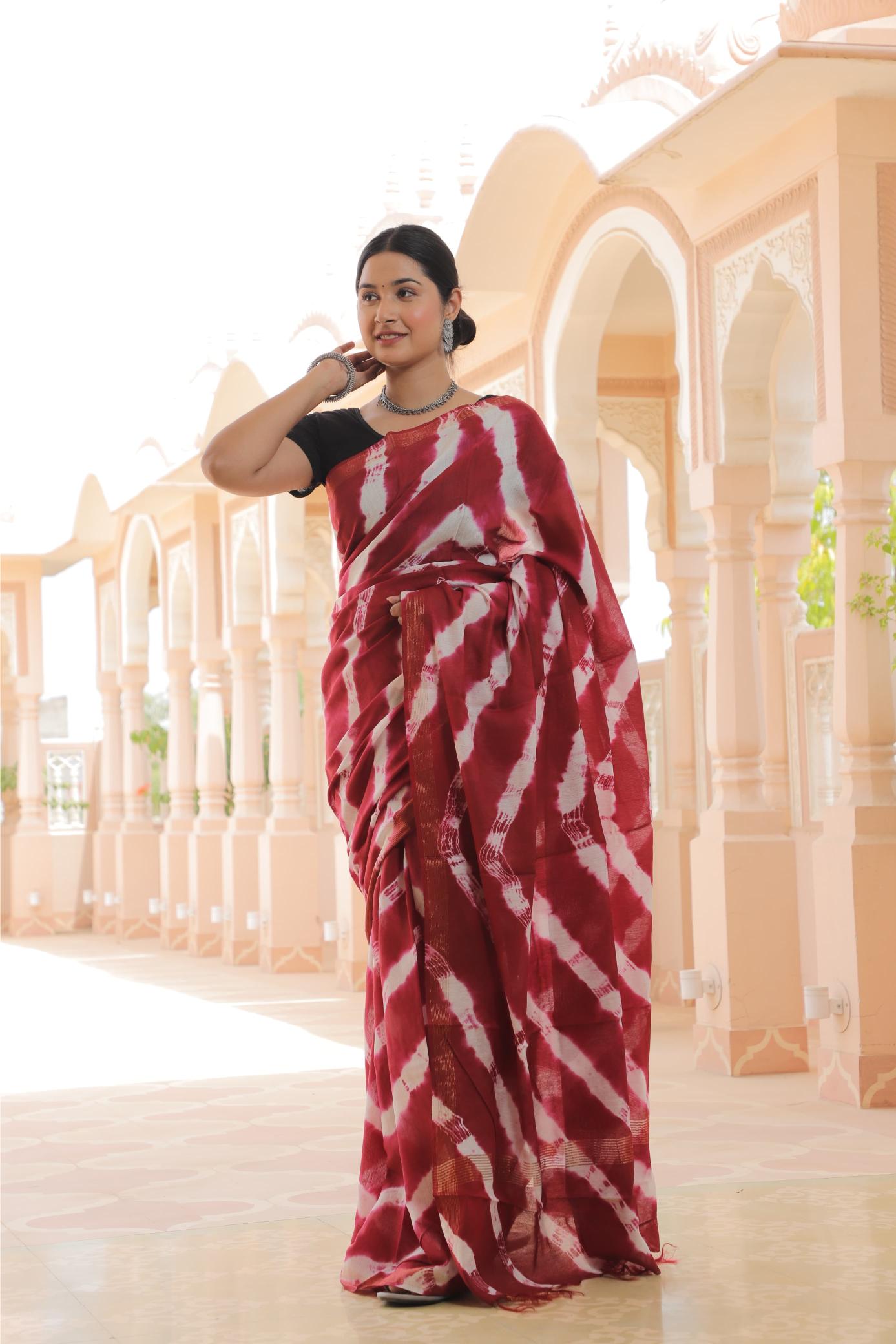 Experience the beautiful blend of traditional shibori art with our cotton silk saree. Made from high-quality handloom silk, this saree features intricate prints and patterns that showcase our rich cultural heritage. Elevate your style game with this luxurious and timeless piece.